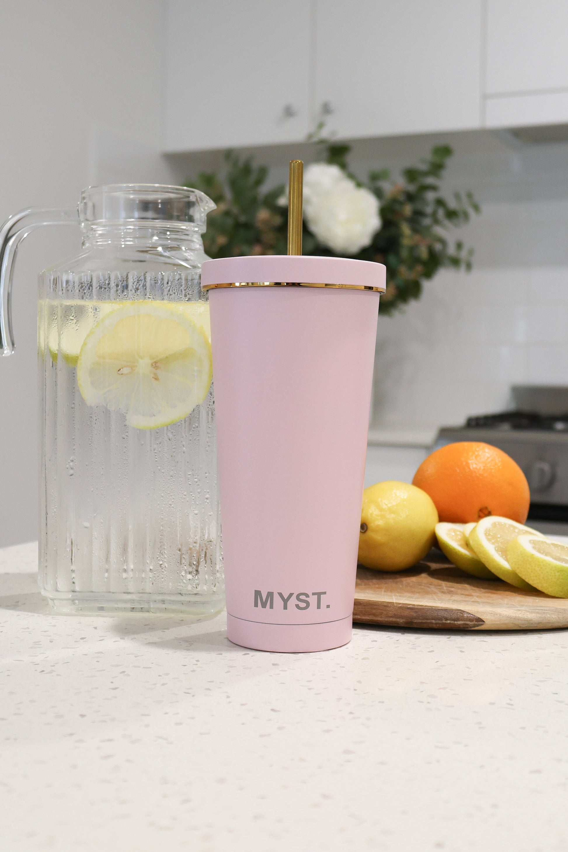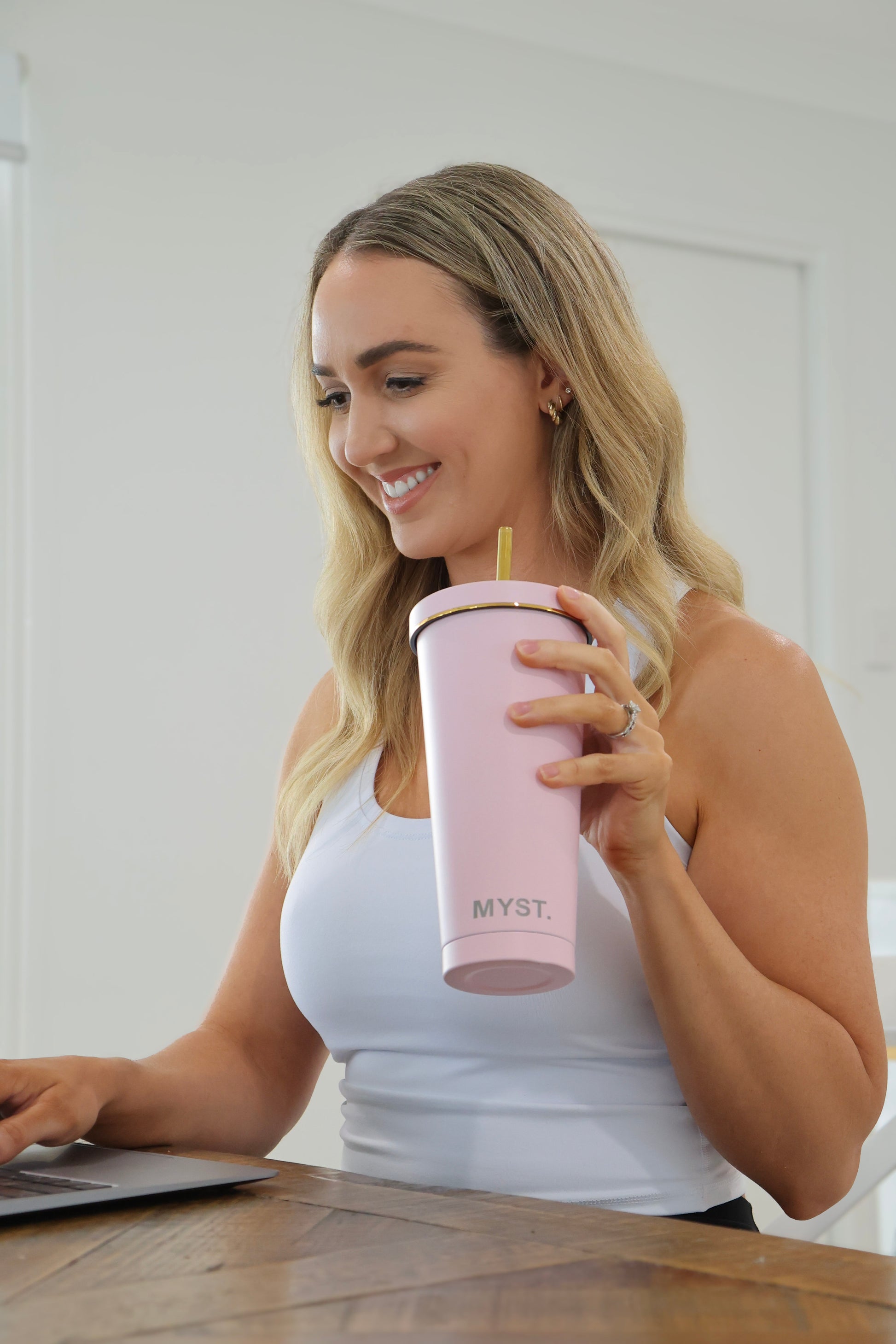Elevated sipping. This blush pink tumbler with a luxe gold metal straw blends beauty and function. Perfect for iced coffees, smoothies, or lemon water on the go — it’s your stylish hydration companion.