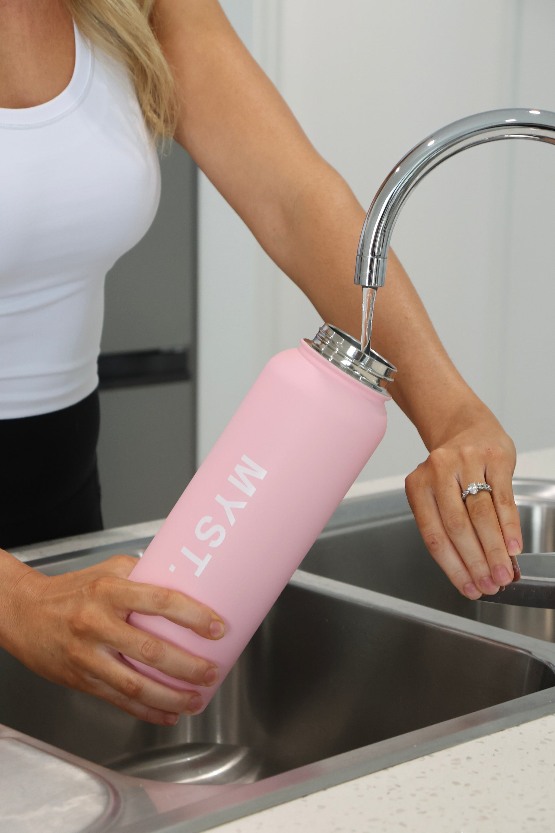 MYST. Insulated Bottle. Stay hydrated on the go with our MYST. stainless-steel double-wall insulated bottle. Designed to keep drinks cold for up to 24 hours and hot for up to 12, its double-wall construction prevents condensation and maintains optimal temperature. Crafted from food-grade 18/8 stainless steel, it reduces reliance on single-use plastics. Features & Benefits: 1.2L (40oz) capacity Double-wall vacuum insulation. Made from durable, food-grade 18/8 stainless steel Wide mouth for ice and easy cleaning Premium double powder coat finish. BPA, BPS & Phthalate-freeReusable & eco-friendly. Care Instructions: Hand wash only. Do not microwave. Size & Dimensions: Volume: 1,182mL (40oz). Mouth Diameter: 2.26" Diameter: 3.58". Height: 11.2". Weight: 500g
